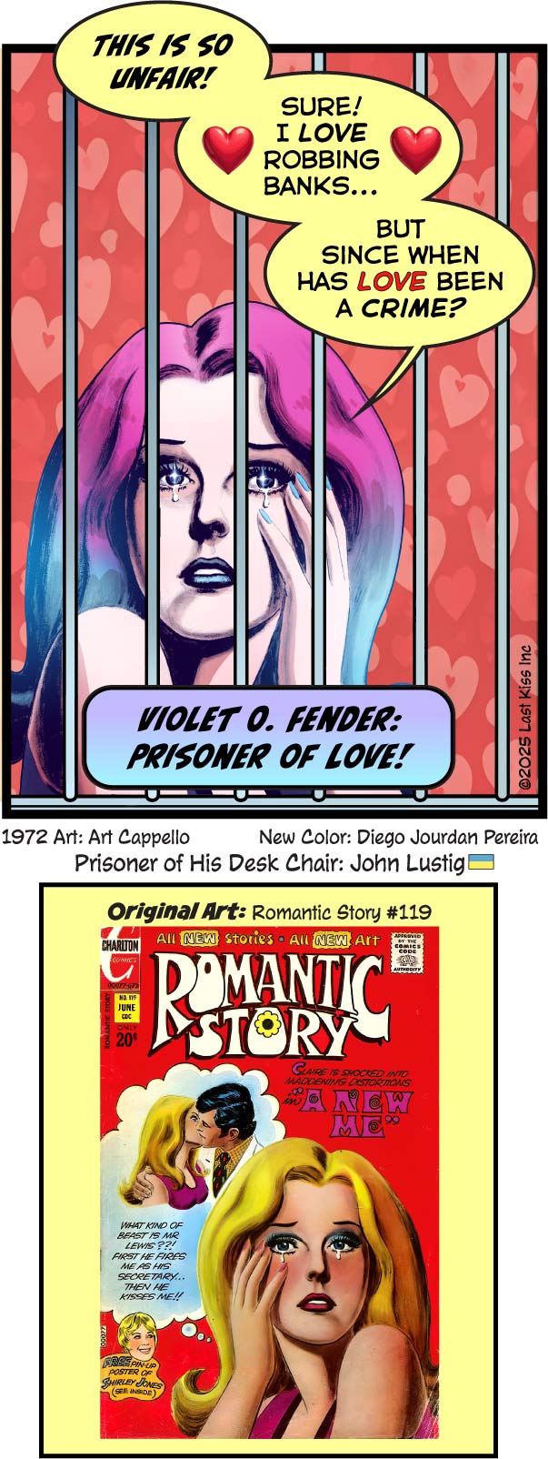 CRYING WOMAN BEHIND JAIL BARS: This is so unfair! Sure! I love robbing banks...But since when has love been a crime?