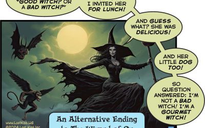 ↓ TranscriptSCENE: Witch flying on a broomstick. Flying monkey, jack-o'lantern/pumpkin. Monster. WITCH: Dorothy asked me if I’m a “good witch? or a bad witch?” I wasn’t sure. But I invited her for lunch! And guess what? She was delicious! And her little dog too! So question answered: I’m not a bad witch! I’m a gourmet … Continue reading I’ll Get You, My Pretty!
